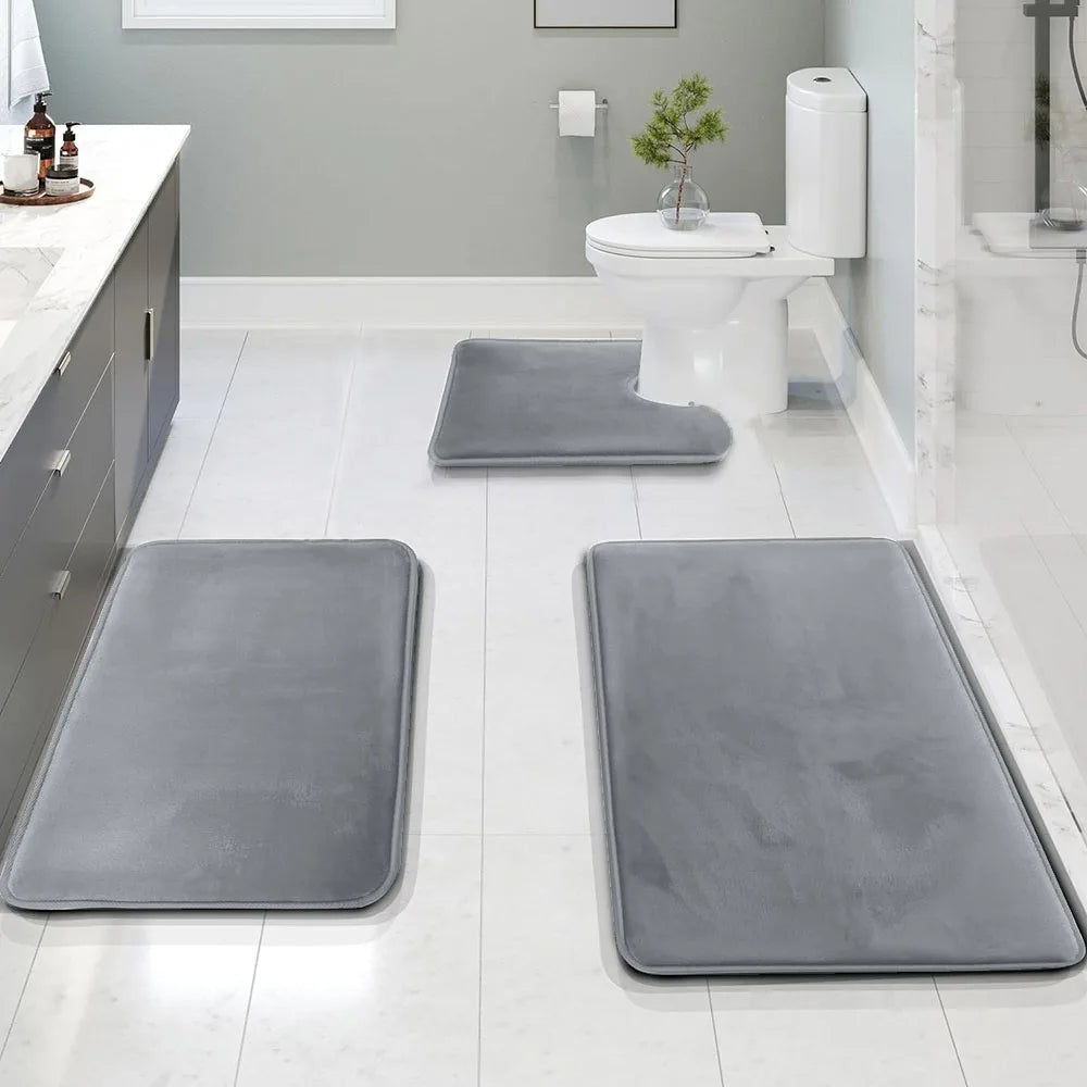 Zestaw zmywalnych mat łazienkowych AquaShieldStep – miękka warstwa gąbkowa i powłoka ochronna dla Twojej wygody – idealny na stylowy i trwały komplet do codziennego użytku w łazience