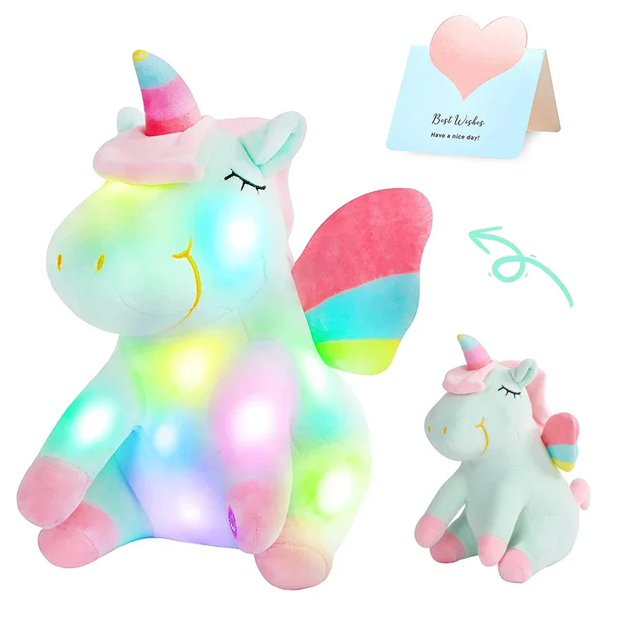Rozbudź wyobraźnię swojego dziecka i wypełnij noce magicznym czarem dzięki pluszowemu przyjacielowi z efektem świetlnym! Ten uroczy towarzysz nie tylko jest miękki i przytulny, ale także ożywa dzięki delikatnym, świecącym światłom i kojącej muzyce, tworząc uspokajające i czarujące doświadczenie podczas zasypiania. Dostępny w uroczych kolorach zielonym i różowym, na pewno stanie się ulubieńcem dziewczynek w każdym wieku.