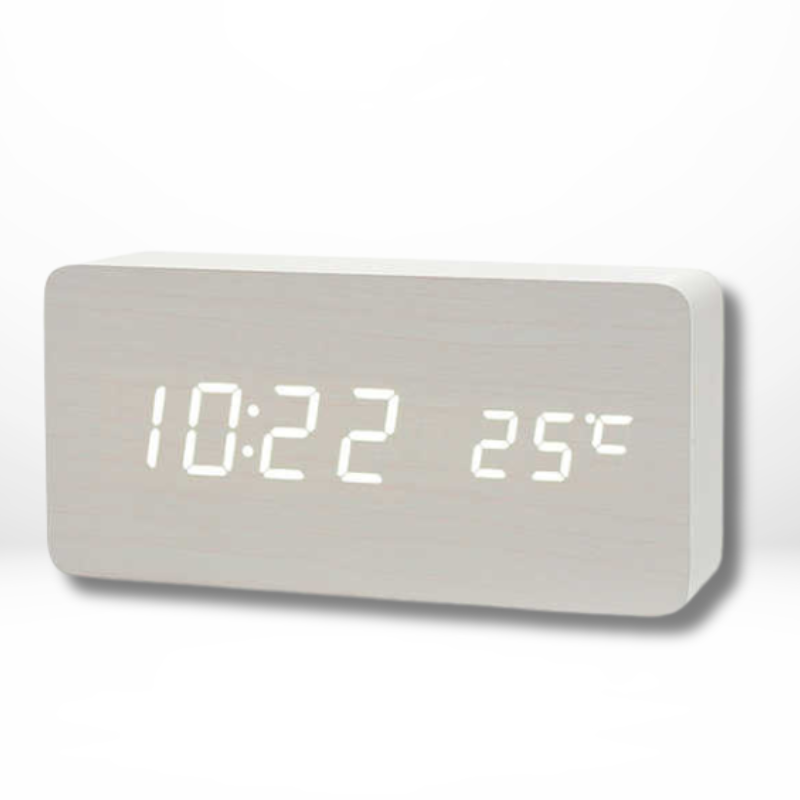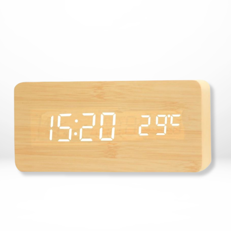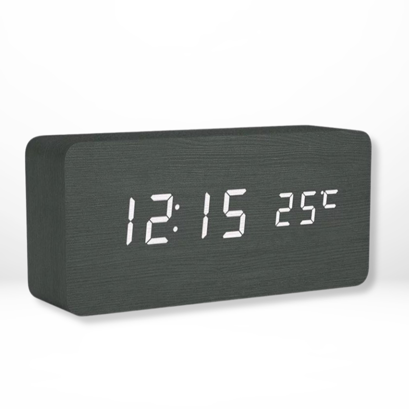 Ciepło naturalnego drewna wprowadza do wnętrza spokój i harmonię, a subtelny wyświetlacz LED z łatwością pokazuje czas oraz temperaturę. To elegancki dodatek, który łączy w sobie styl z praktycznością, idealny do każdego nowoczesnego domu.